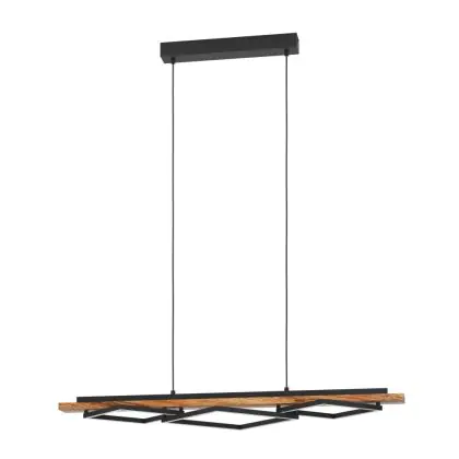 Eglo Pendelarmatuur Boyal Hout Zwart, Roestig 42W 3500lm - 830 Warm Wit | Dimbaar
