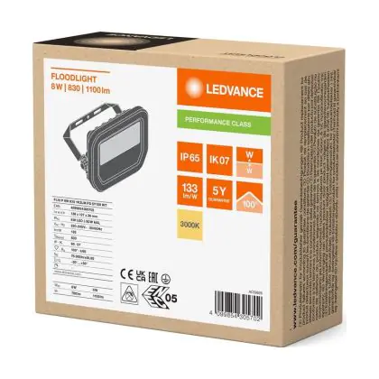 Ledvance LED Breedstraler Aluminium Wit 8W 1100lm 100D - 830 Warm Wit | IP66 - Symmetrisch