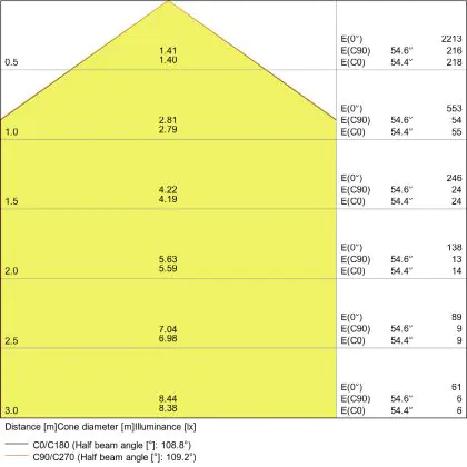 De lichtopbrengst (Lumen), geeft weer hoe krachtig het uitgestraalde licht is. Dit is belangrijk om te weten om de juiste sfeer te creëren. 0 tot 400 Lumen is bij uitstek geschikt voor accent- of sfeerverlichting. Een hoger aantal Lumen is, afhankelijk van de grootte van de ruimte, beter geschikt als ondersteunende- of basisverlichting. Heb je plafonds hoger dan 4 meter, dan is een lichtopbrengst van minimaal 8000lm aan te raden indien heldere verliching gewenst is (vb. in werkomgevingen).