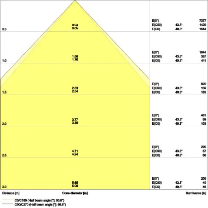 ![]() De kleurcode is een combinatie van de kleurweergave (CRI) en lichtkleur (Kelvin). Het eerste getal is de kleurweergave (1 = zeer slechte kleurweergave, 9 = maximale kleurechtheid). Het tweede en derde cijfer betreft de lichtkleur. Een lamp met kleurcode 830 heeft bijvoorbeeld een goede kleurweergave en straalt een warm wit licht uit (3000K), waar een lamp met de kleurcode 940 een uitstekende CRI heeft en een koel wit licht (4000K) uitstraalt. |