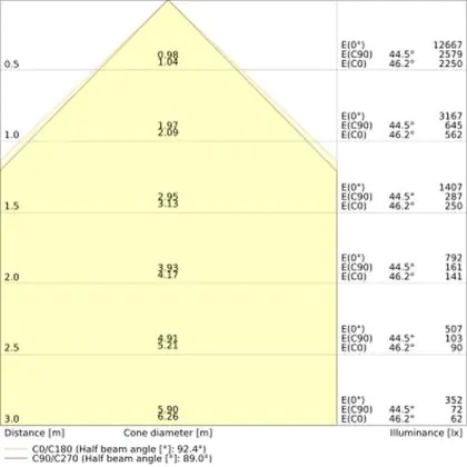 ![]() De kleurcode is een combinatie van de kleurweergave (CRI) en lichtkleur (Kelvin). Het eerste getal is de kleurweergave (1 = zeer slechte kleurweergave, 9 = maximale kleurechtheid). Het tweede en derde cijfer betreft de lichtkleur. Een lamp met kleurcode 830 heeft bijvoorbeeld een goede kleurweergave en straalt een warm wit licht uit (3000K), waar een lamp met de kleurcode 940 een uitstekende CRI heeft en een koel wit licht (4000K) uitstraalt. |