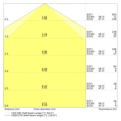 ![]() De kleurcode is een combinatie van de kleurweergave (CRI) en lichtkleur (Kelvin). Het eerste getal is de kleurweergave (1 = zeer slechte kleurweergave, 9 = maximale kleurechtheid). Het tweede en derde cijfer betreft de lichtkleur. Een lamp met kleurcode 830 heeft bijvoorbeeld een goede kleurweergave en straalt een warm wit licht uit (3000K), waar een lamp met de kleurcode 940 een uitstekende CRI heeft en een koel wit licht (4000K) uitstraalt. |